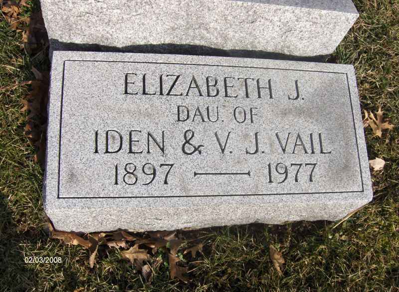 - Vail, Elizabeth J. 1897-1977. Sylvan Heights Cem., N. Union Twp. Contributor: Lanny Golden