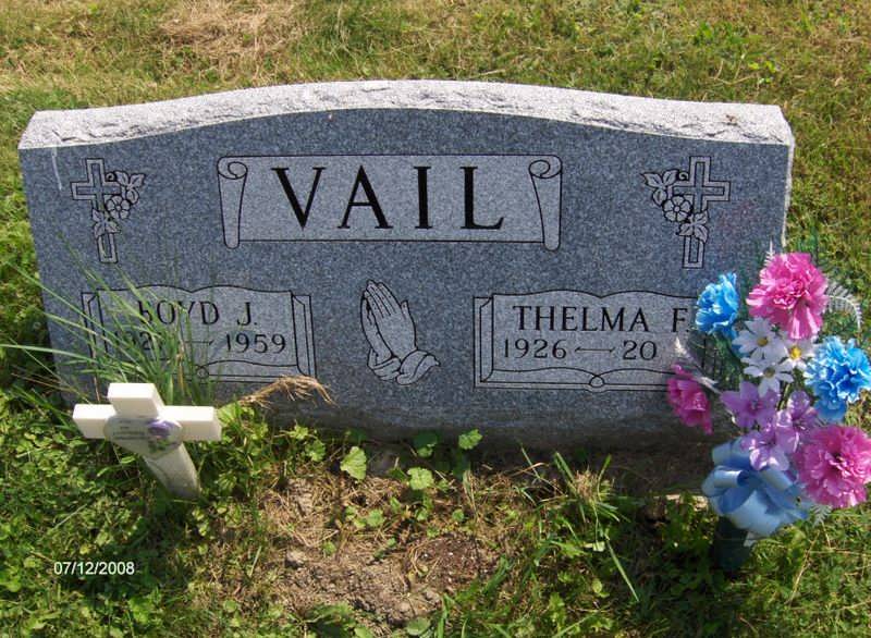 - Vail, Thelma F. 1926-20--. Pleasant View Pres. Cem., Franklin Twp. Contributor: Lanny Golden