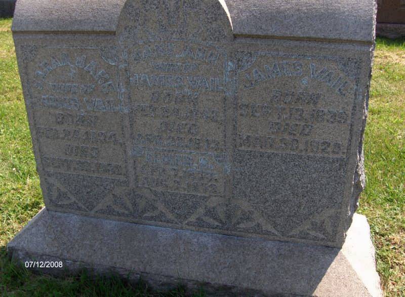 - Vail, Jane A. 1865-1899. Pleasant View Pres. Cem., Franklin Twp. Contributor: Lanny Golden