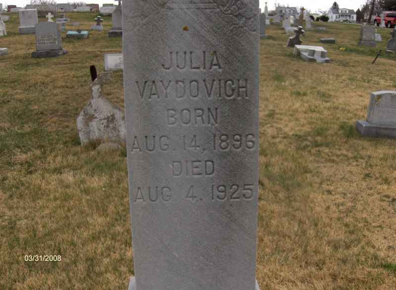 - Vajda, Maria Died 1917. St. John Byzantine Cem., N. Union Twp. Contributor: Lanny Golden