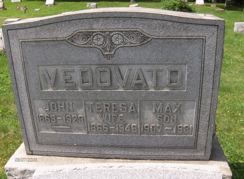 - Vaccaro, Nick 1876-1964. McClellandtown Pres. Cem., German Twp. Contributor: Lanny Golden