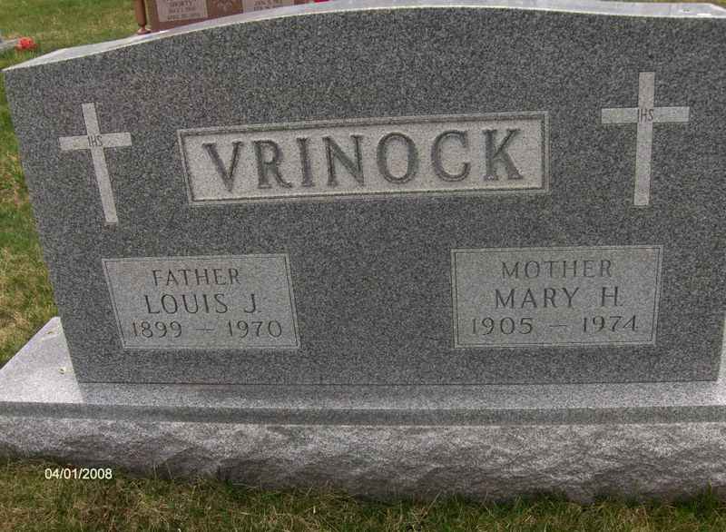 - Vrinock, Louis J. 1899-1970. St. Mary's RC Cem., N. Union Twp. Contributor: Lanny Golden