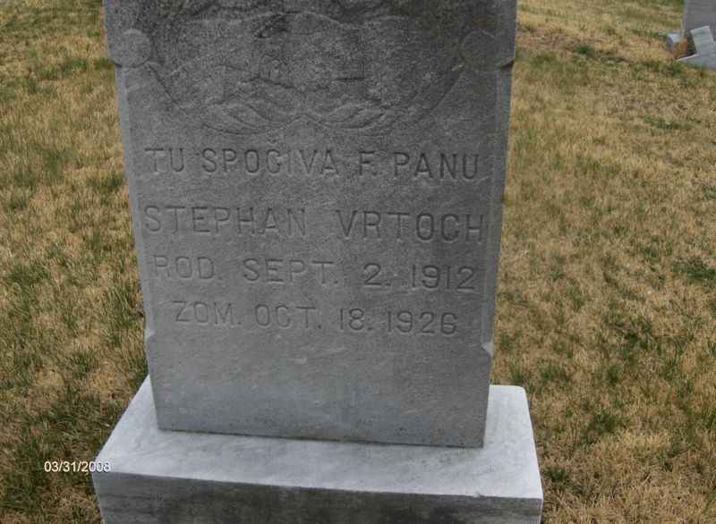 - Vrtoch, Stephan 1912-1926. St. Mary's RC Cem., N. Union Twp. Contributor: Lanny Golden