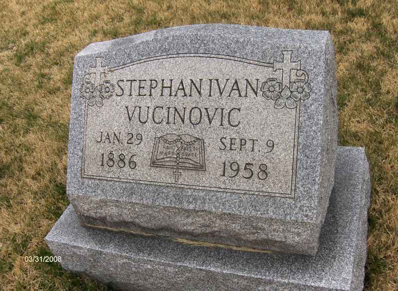 - Vucinovic, Stephan Ivan 1886-1958. St. Mary's RC Cem., N. Union Twp. Contributor: Lanny Golden