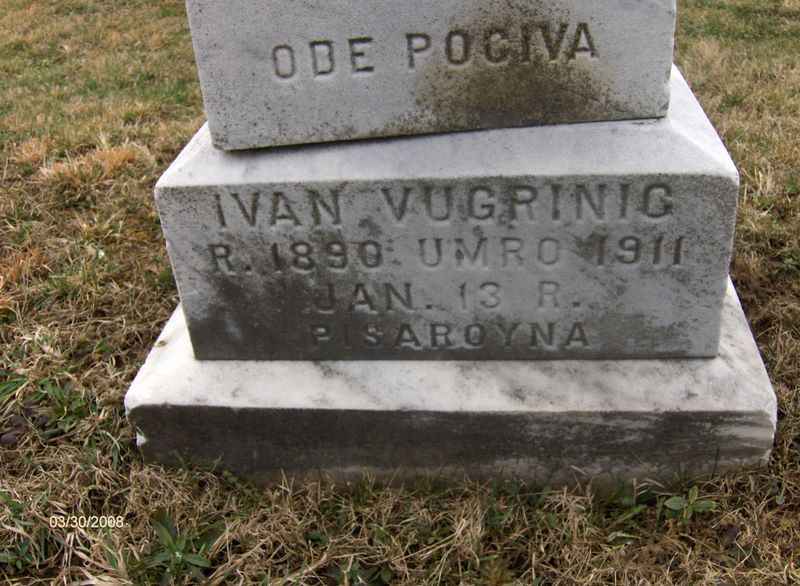 - Vugrinic, Ivan 1890-1911. St. Mary's RC Cem., N. Union Twp. Contributor: Lanny Golden