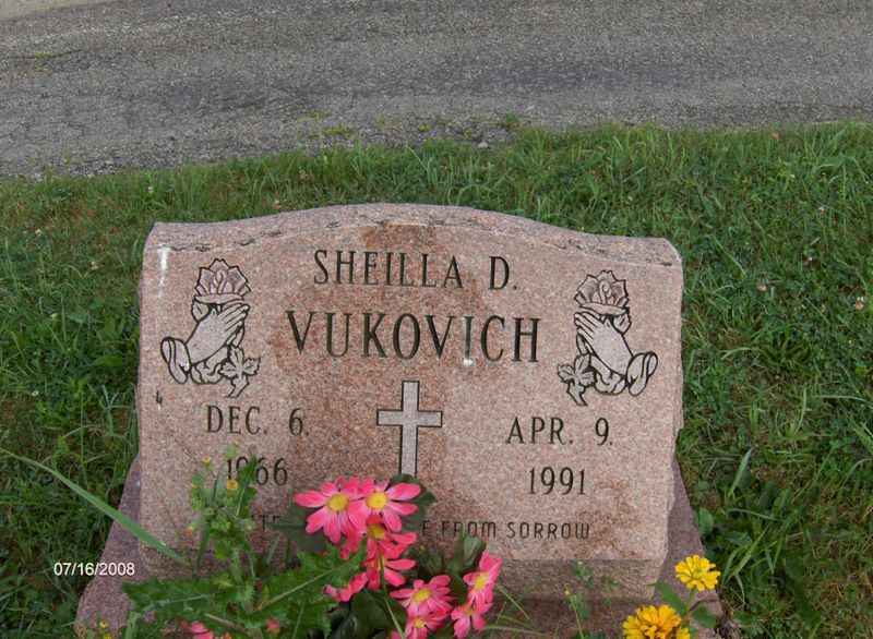 - Vukovich, Sheilla D. 1966-1991. Indian Creek Bapt. Cem., Springfield Twp. Contributor: Lanny Golden