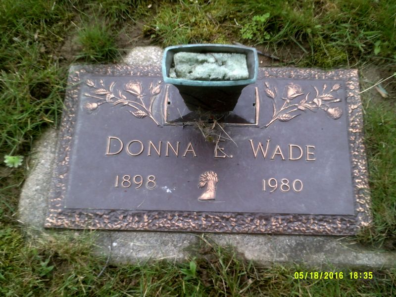 - Wade, Donna E. 1898-1980. Lafayette MG, Block F, Redstone Twp.; Contributor: Randy Knight