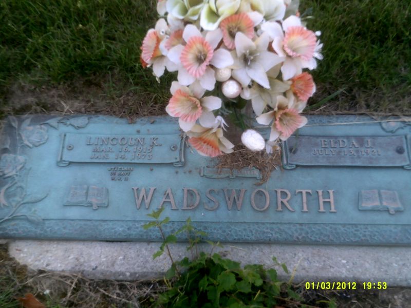 - Wadsworth, Elda J. 1921-(blank). Lafayette MG,Garden of Devotion, Redstone Twp.; Contributor: Randy Knight