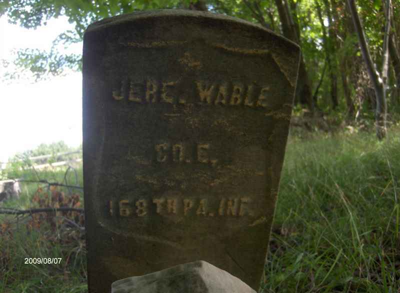 - Wable, Jere. (blank)-(blank). Tinker Ridge Cem., Wharton Twp. Contributor: Lanny Golden