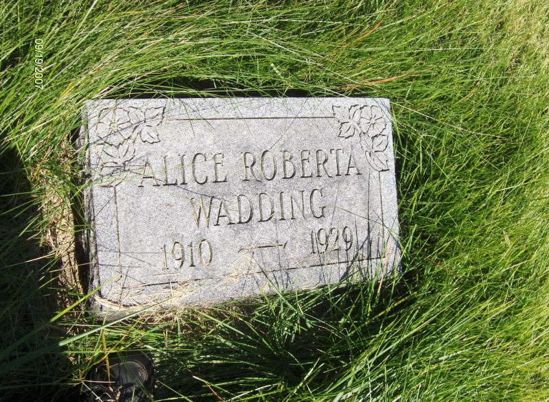 - Wadding, Alice Roberta 1910-1929. Hill Grove Cem., Connellsville. Contributor: Lanny Golden