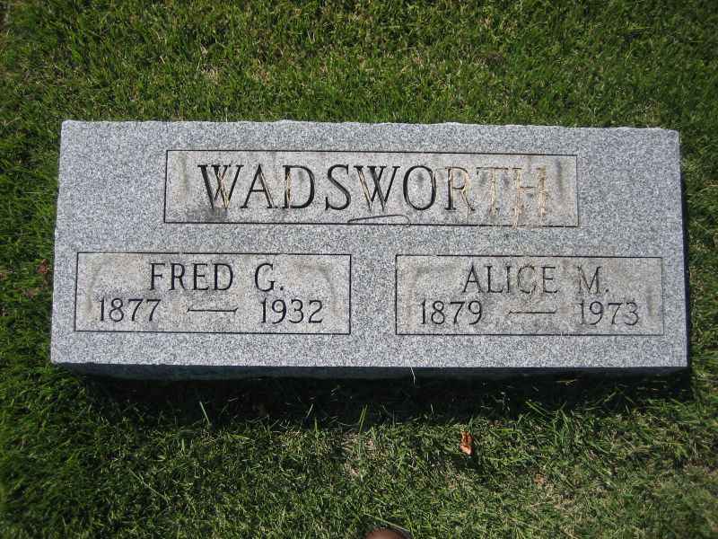 - Wadsworth, Alice M. 1879-1973. Oak Grove Cem., S. Union Twp. Contributor: Jack McNees