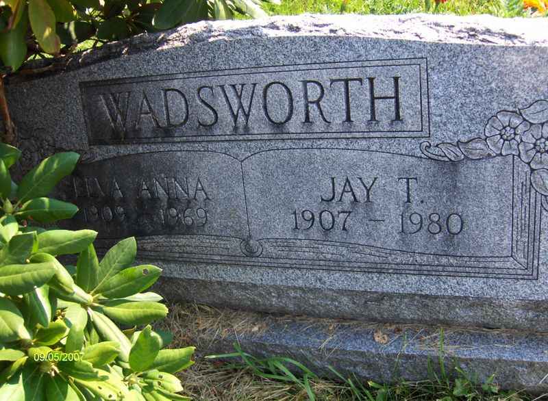 - Wadsworth, Jay T. 1907-1980. Greenlick Cem., Bullskin Twp. Contributor: Lanny Golden