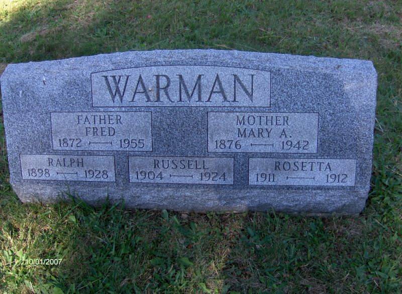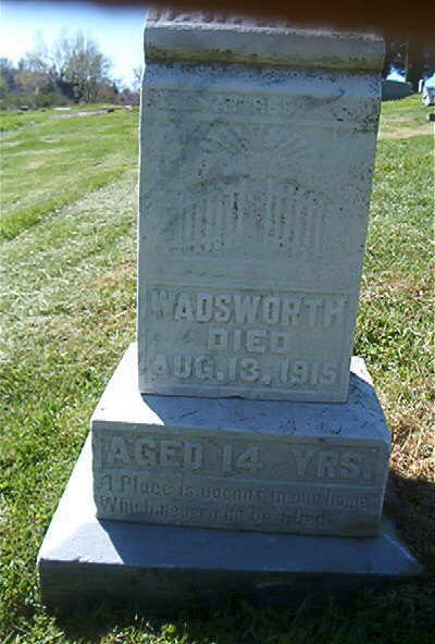 - Wadsworth, Fred G. 1877-1932. Oak Grove Cem., S. Union Twp. Contributor: Jack McNees