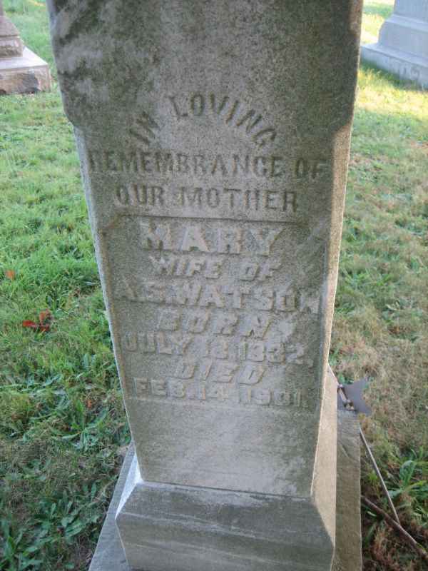 - Waddington, Mary B. Died 1907. Little Redstone UM Cem., Washington Twp. Contributor: Lanny Golden