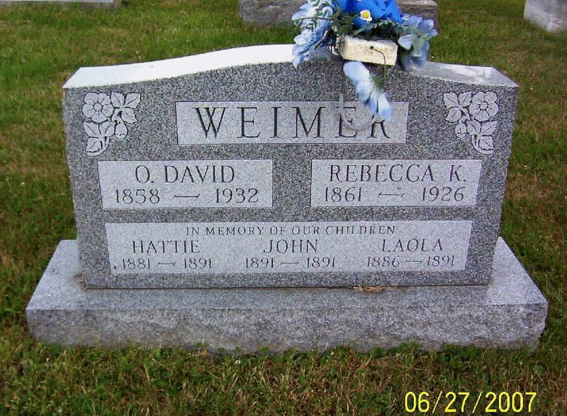 - Wymer, Naomi C. Died 1892. White Rock Cem., Georges Twp. Contributor: Lanny Golden
