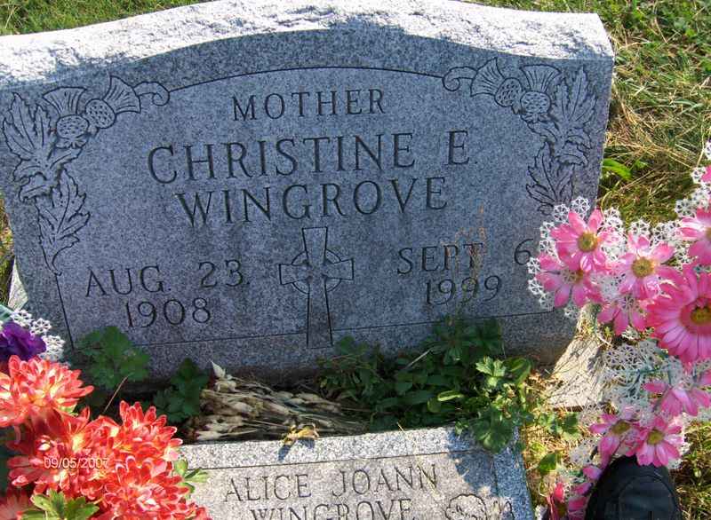 - Wyno, Patsy 1909-1973. LaFayette MP, Gdn of Blessing, Redstone Twp.; Contributor: Randy Knight