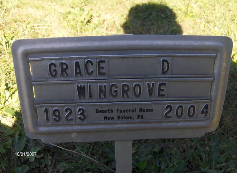 - Wyno, Virginia M. 1919-1970. LaFayette MP, Gdn of Blessing, Redstone Twp.; Contributor: Randy Knight