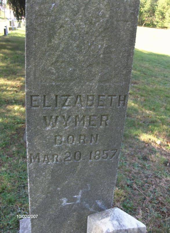 - Wymer, Elizabeth 1857-(blank). White Rock Cem., Georges Twp. Contributor: Lanny Golden